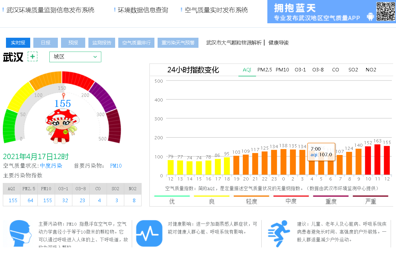 武汉空气质量实时监测数据。