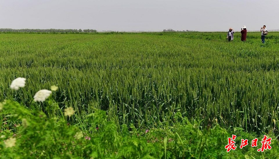 长江日报4月17日讯 4月17日,府河东西湖大堤外,一大片一眼望不到边的麦田深藏在绿草如茵的滩地中间。眼下正是小麦扬花抽穗期,初长成的麦穗吐出一个个细小的花蕊。阵阵大风刮过,麦田里掀起滚滚麦浪。(长江日报记者李永刚 摄影报道)