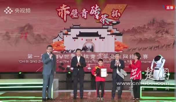 “五洲共享,茗战赤壁”,本次大赛由中国围棋协会、中央广播电视总台体育青少节目中心主办、赤壁市人民政府承办,是疫后首个中国发起的世界范围的业余围棋赛事,来自26个国家的92名选手正式参赛。中央电视台著名主持人张斌主持当日总决赛活动,来自中国的12岁选手黄海承从容淡定,在赤壁羊楼洞万里茶道文化博览中心现场与来自万里之遥的美国小选手漆圣颐隔空对战,获得儿童组冠军。