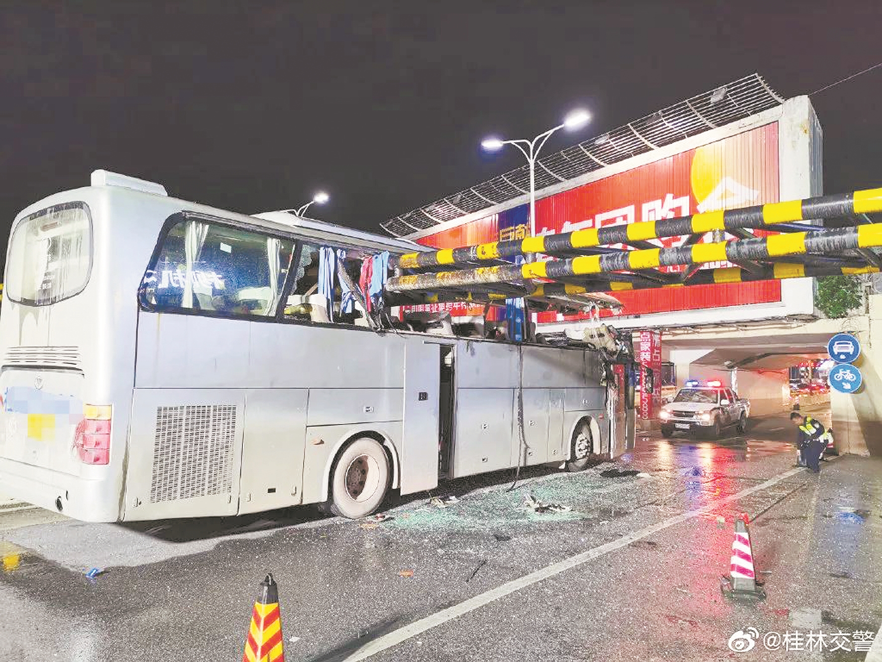 4月17日晚8时许,广西桂林市西门桥附近,一辆桂A牌照旅游大巴与限高架相撞,事故造成1死6伤。目前大巴司机已被警方控制。