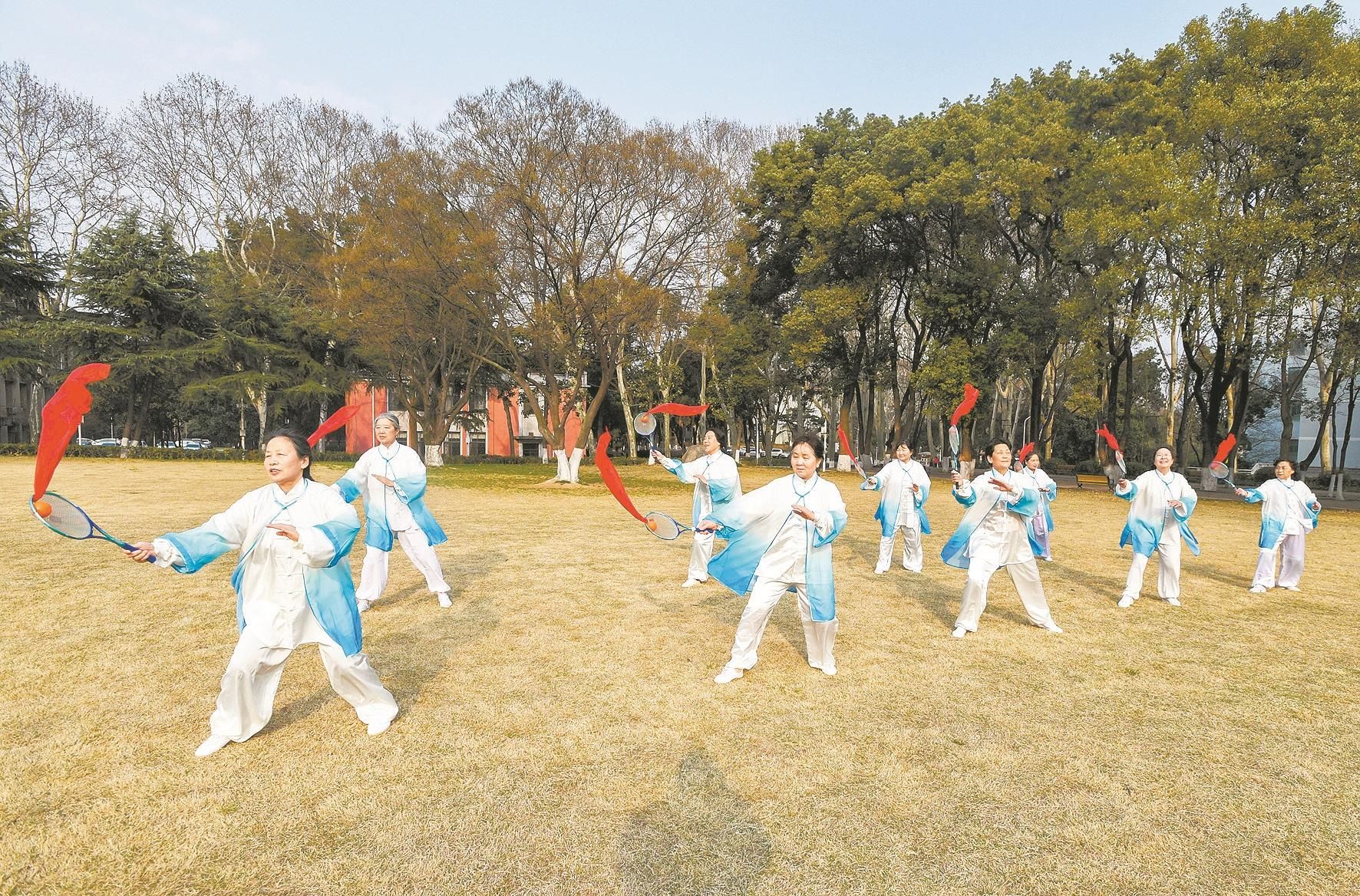 4月中下旬,在华中师范大学博雅广场上,一群年过半百的阿姨们手拿球拍,伴随着音乐翩翩起舞,她们轻舞球拍的时候,球就像粘在拍上一样划出优美弧线……这项运动,现已成为人们健身的“新宠”。