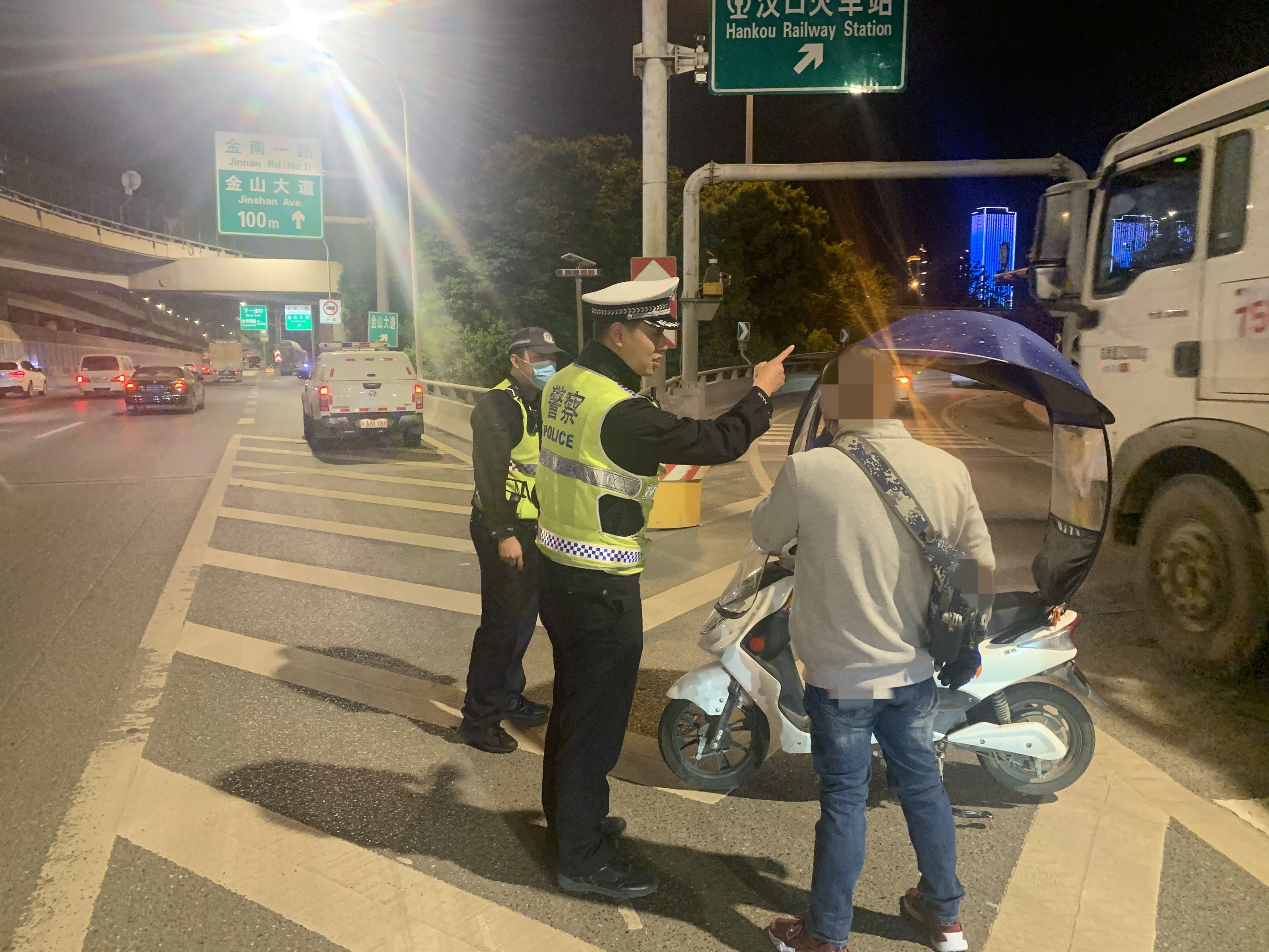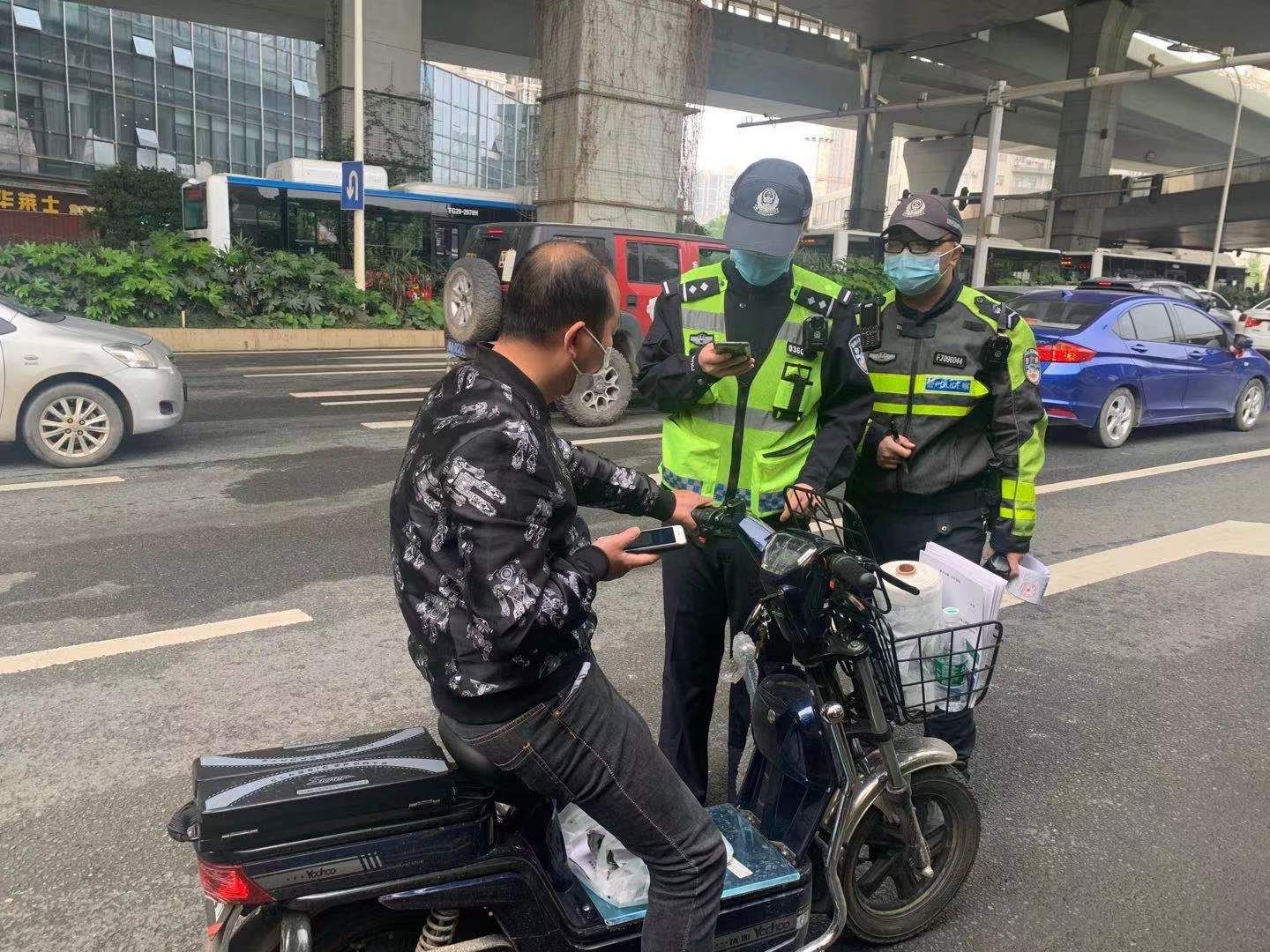 熊师傅对交警说:“我赶着送快递,走上面的非机动车道要绕一大截路!”江汉交警程欢严肃地批评熊师傅:“到底是生命安全重要,还是赶时间重要?”