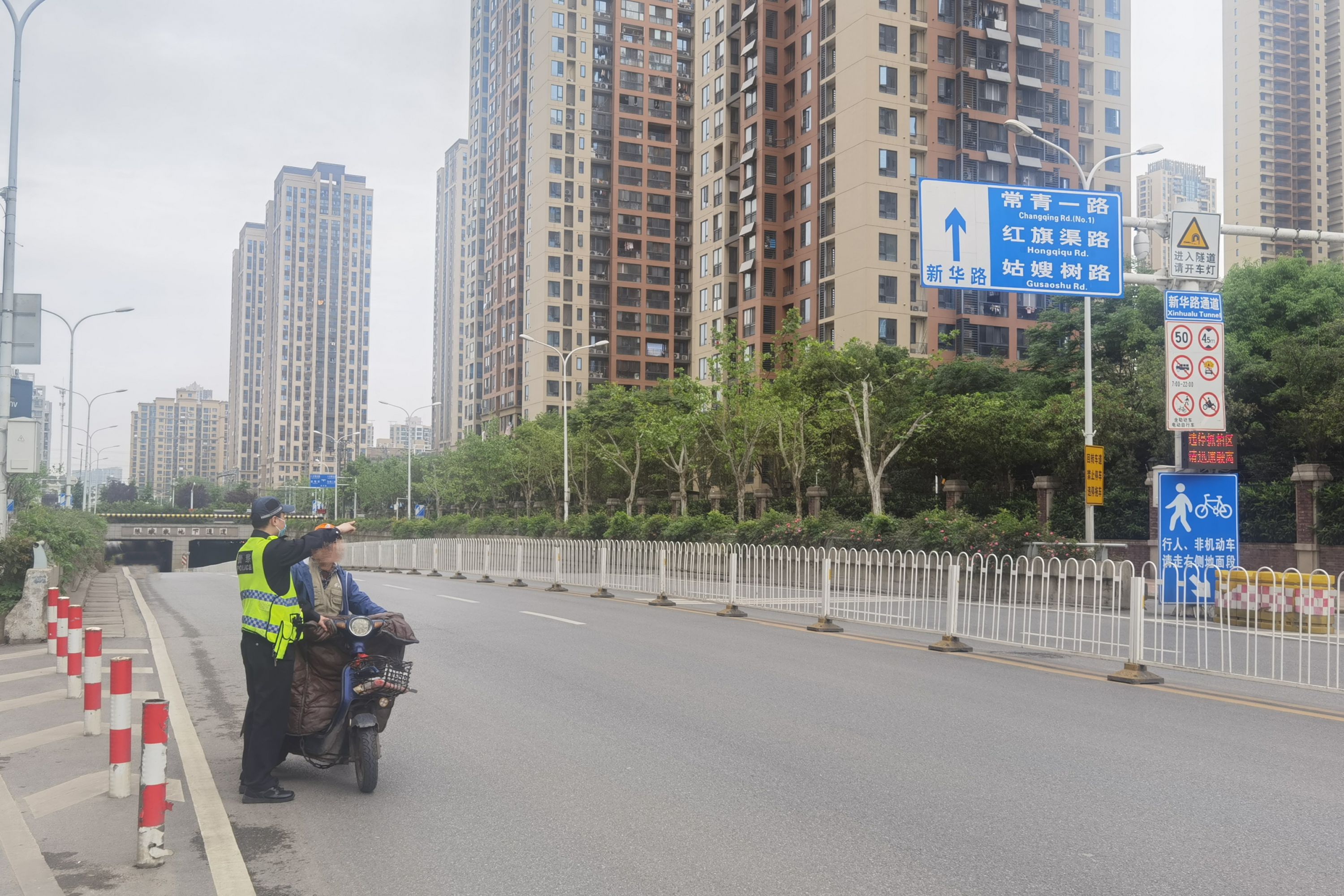 长江日报4月20日讯 4月19日上午9时30分,快递员熊师傅骑着电动车准备下陈家墩地下通道,旁边有交警挥手拦他,熊师傅加速冲了过去,结果被等在出口处的民警拦了下来。