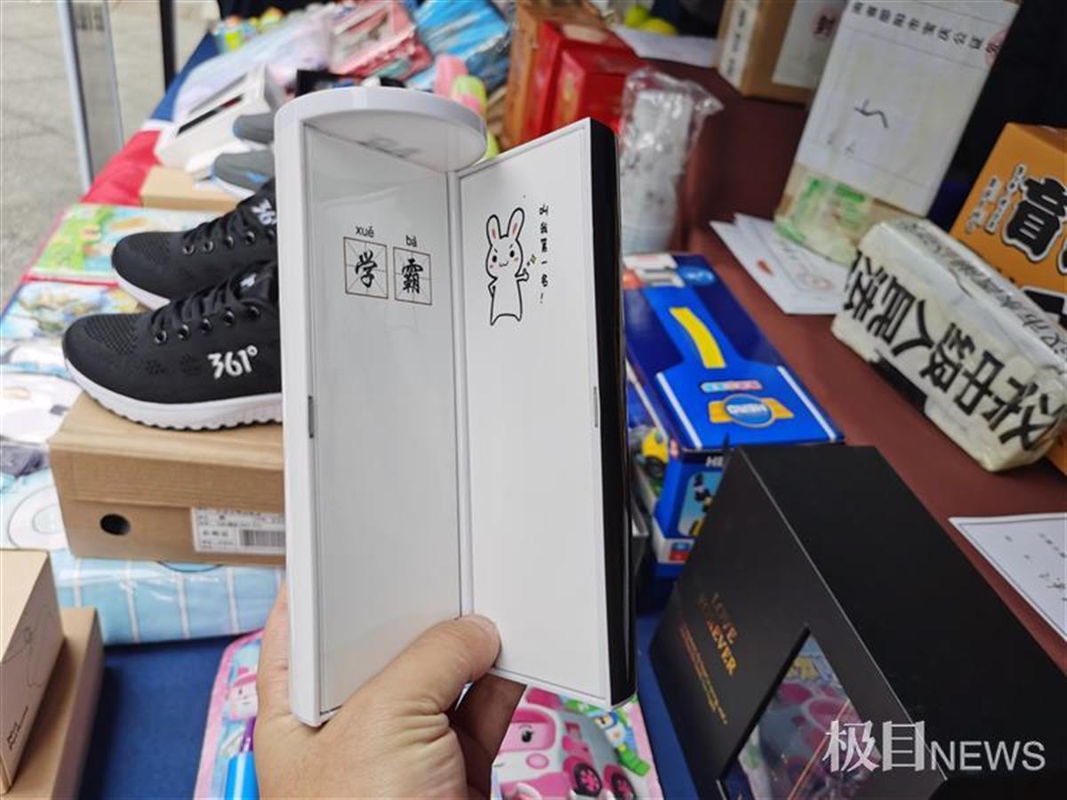 展示区的小桌上,两个不同颜色的手持小电扇引起了围观市民的注意。“你们可以试一下手感,重量,看看哪个是正品,哪个是仿品。”