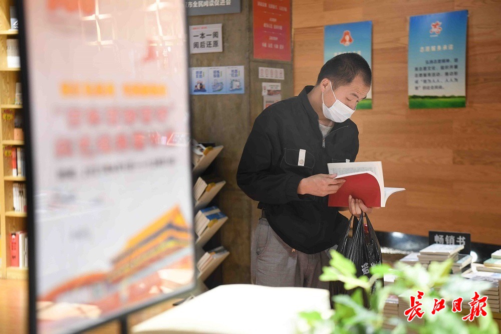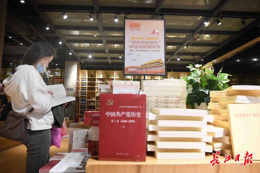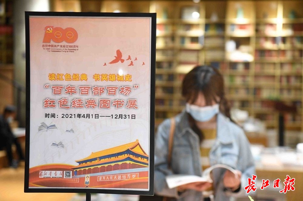 长江日报4月20日讯 4月20日,江汉路新华书店,读者在红色主题图书展展区翻阅书籍。为庆祝中国共产党成立100周年,武汉市新华书店举办主题为“读红色经典 书英雄城史”的红色经典图书展。(长江日报记者高勇 摄影报道)