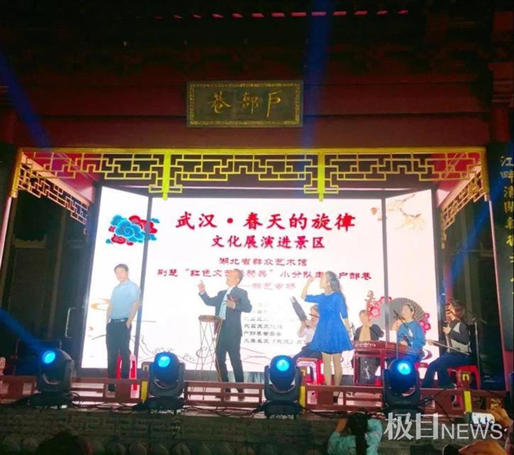 “他一边吃来一边唱……”当最原汁原味的湖北说唱艺术与最有特色的湖北味道相遇,会是怎样的地道“风味”?4月17日晚,湖北省群众艺术馆“荆楚红色文艺轻骑兵”小分队走进“汉味小吃第一巷”户部巷,为全国来武汉户部巷打卡的游客带来精彩的曲艺专场演出。