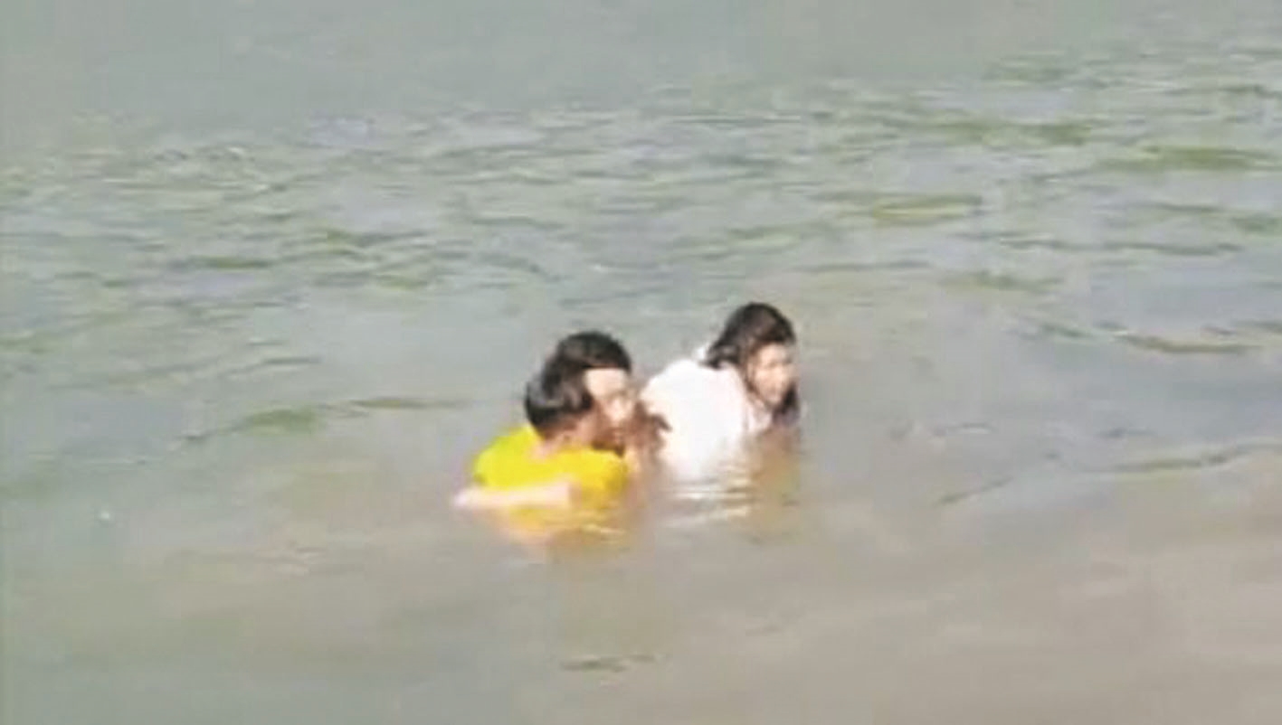 纪坤回忆,几乎是一瞬间,姐弟俩就被水流卷离了岸边。情况紧急,他一边向两人落水的方向跑,一边脱掉衣服裤子,“上衣扣子一下就被我扯掉了,手表也忘了摘下来,但那时根本顾不上这些,心里只想着救人。”