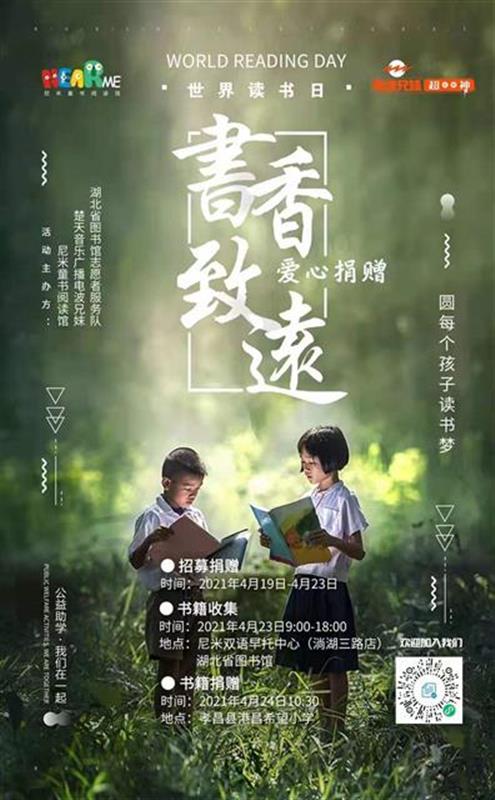 第二十六个世界读书日来临之际,“书香致远”爱心捐赠活动由湖北省图书馆志愿者服务队联合楚天音乐广播、阅读馆等社会力量共同发起,让更多的孩子读到好书,让更多的好书发挥价值,让书香溢满童年。