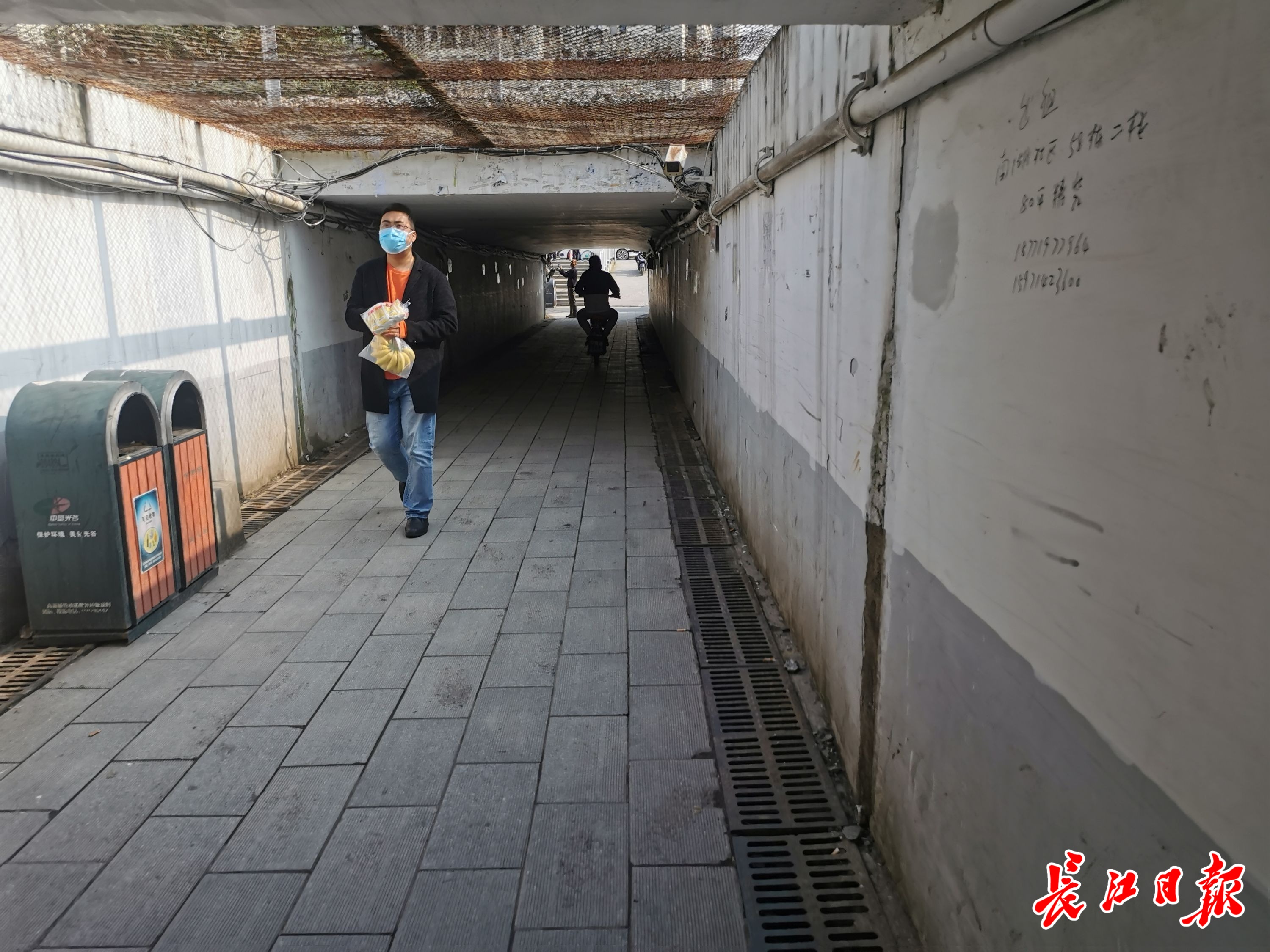 水蓝路一侧有水蓝郡、南波湾、光谷自由城等多个小区,居民们每天需要穿过涵洞,前往另一侧的南湖社区综合市场买菜,因此涵洞每天人流量很大。