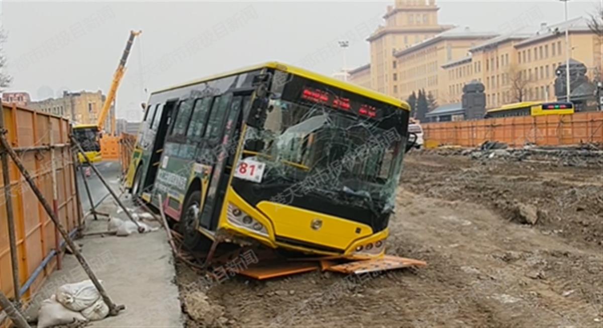 4月21日下午1时30分许,黑龙江省哈尔滨市南岗区西大直街与瓦街路口附近,一辆81路公交车突然撞开10多米长的施工围挡,歪进正在施工的马路中间工地,万幸的是并未造成人员伤亡。