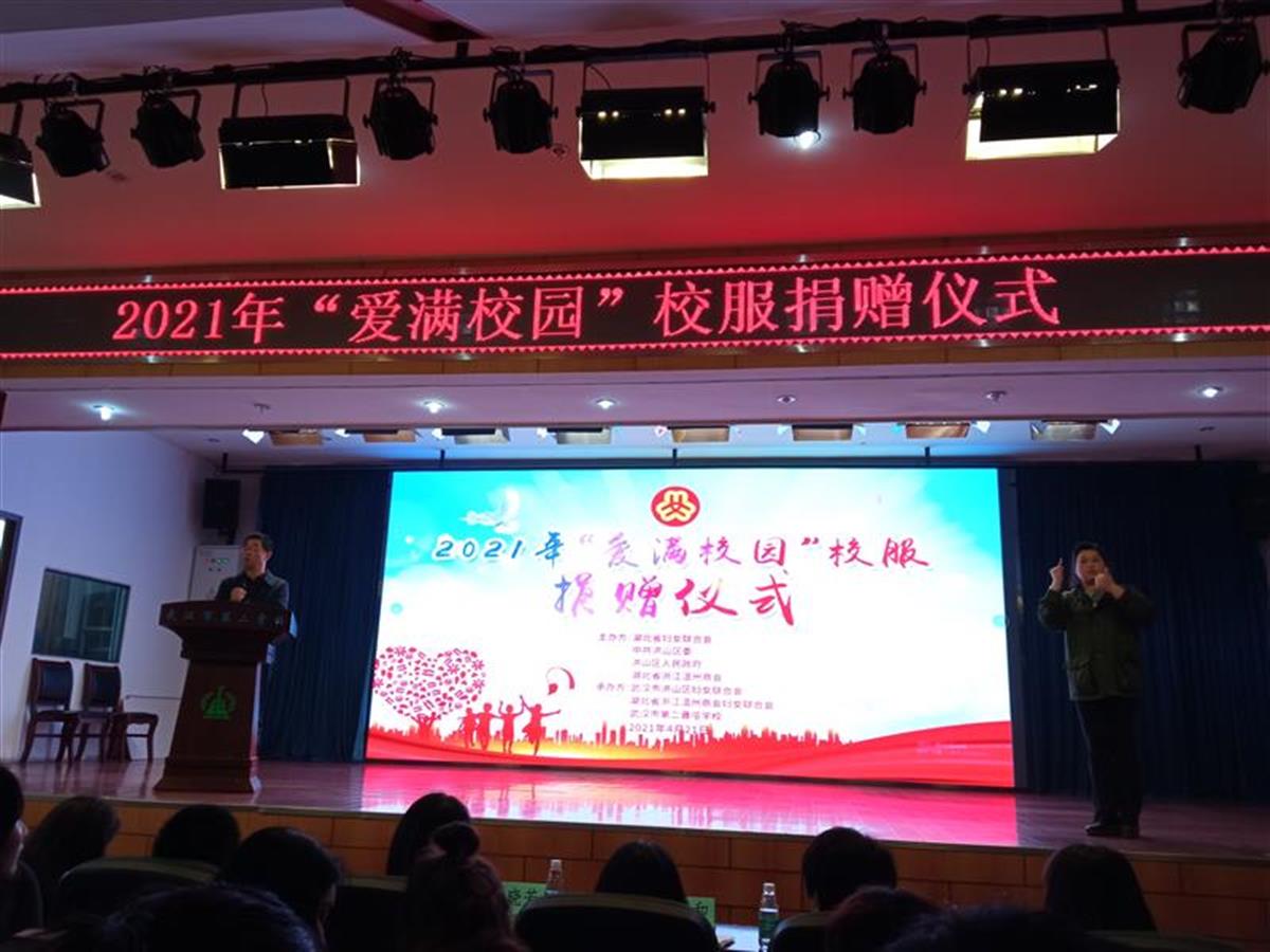 人间四月,情暖江城。4月21日下午,2021年“爱满校园”校服捐赠仪式在武汉市第二聋哑学校举行,该校218名特殊学生收到了436套价值5万余元的爱心校服,孩子们的脸上洋溢着幸福灿烂的笑容。