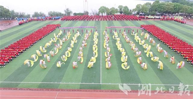 湖北日报讯(记者韩晓玲、通讯员刘明杨)4月22日,在武昌理工学院运动会开幕式上,该校1921名大学生进行了一场大型团体操表演,向建党100周年献礼。