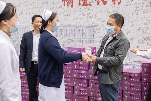 获赠来自徐闻的菠萝,武汉大学人民医院东院区院长肖红军十分感动,“我们感到为战疫付出的一切都是值得的。这份甜蜜来之不易,希望更多武汉人品尝到徐闻菠萝。”疫情期间战斗在ICU病房的该院重症医学科医生张烨,现场接过一箱菠萝,他高兴地说:“徐闻菠萝现在很火,我要和家人一起好好品尝一下。”