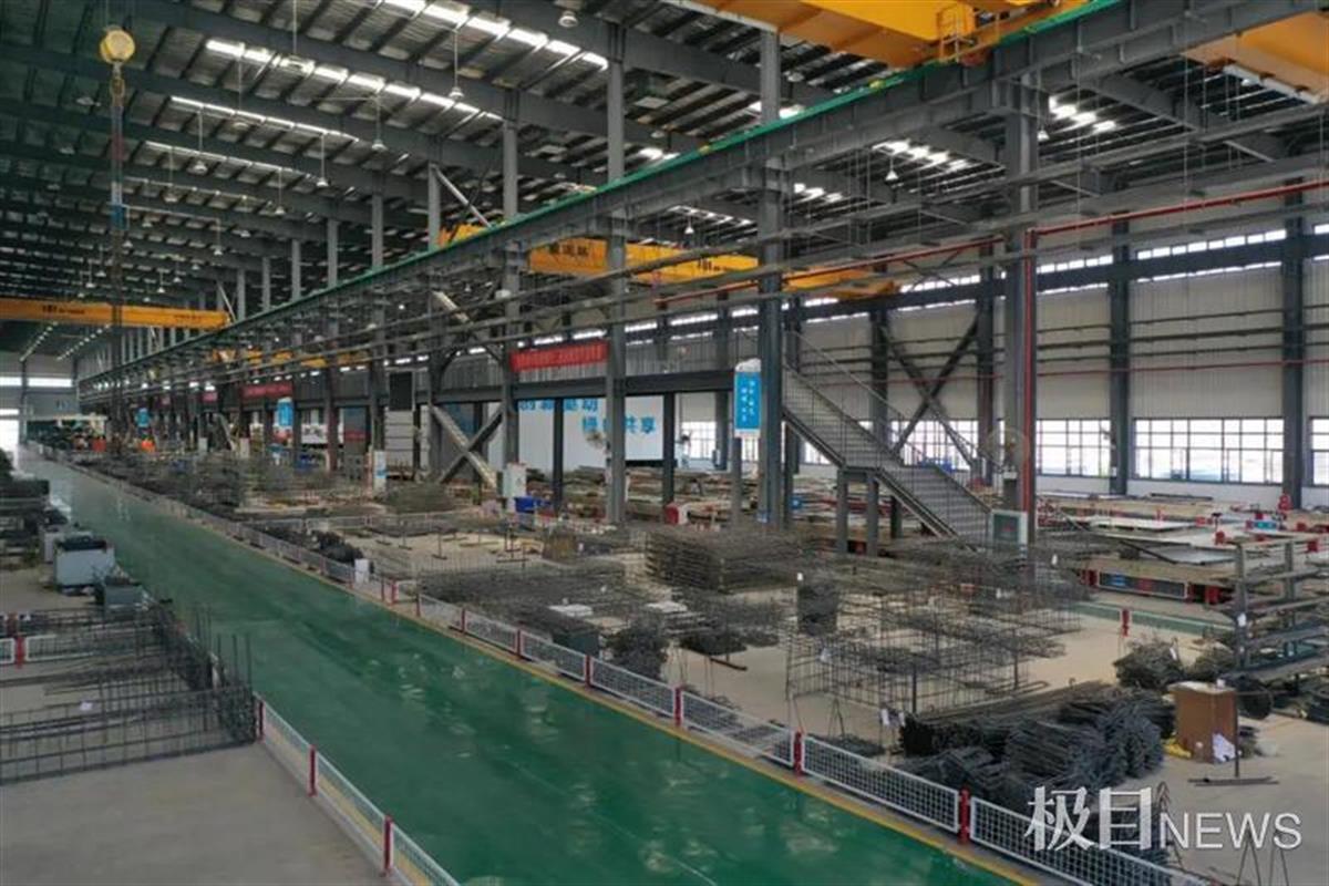 工厂厂长占成元介绍,汉南厂占地200亩,总投资10亿元,于2018年10月正式投产,是湖北省智能化程度最高、设计生产能力最大的装配式建筑生产基地,拥有四条室内生产线以及刚刚扩建的一条室外生产线,目前最高日产能500多立方米,可用于建造5000-6000平方米的房子。