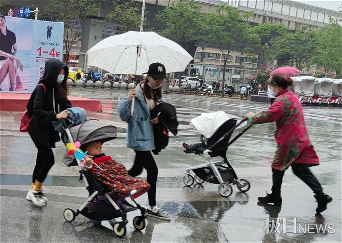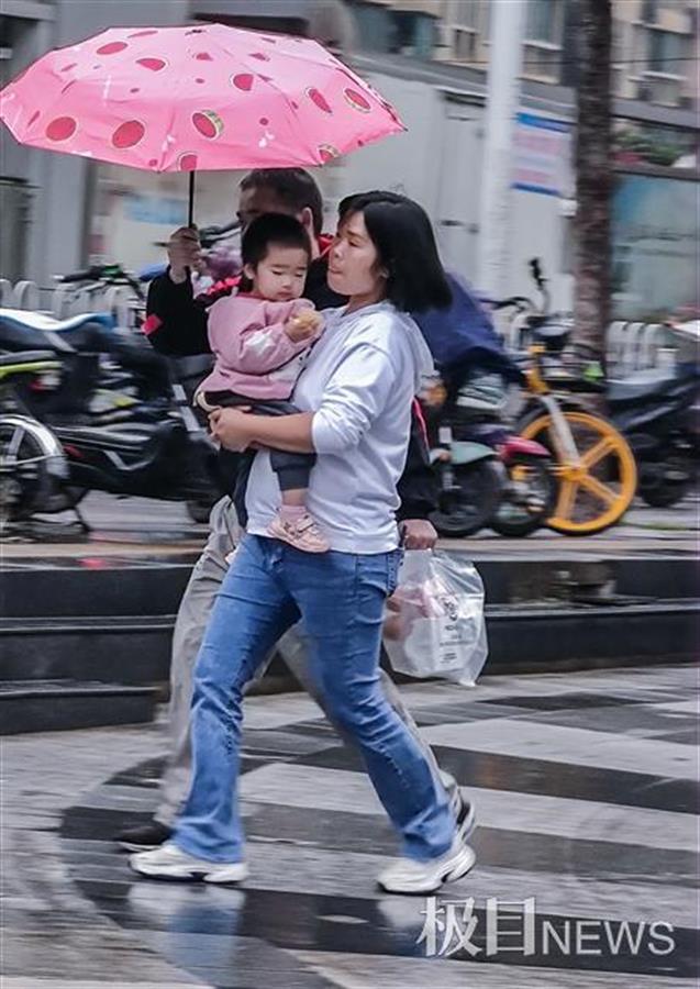 4月24日,雨水再次造访武汉,傍晚时,人们感觉天气有明显降温,外出着装单薄的人感觉到有点冷。