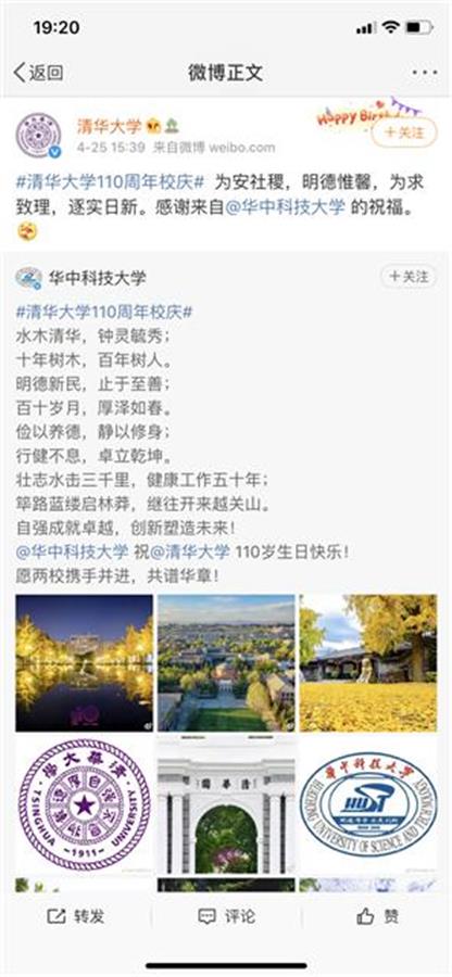 清华大学喜事盈门,也让它在中国教育界的强大朋友圈一览无遗,全国各大高校纷纷为其送上祝福,你来我往尽显非凡文采。