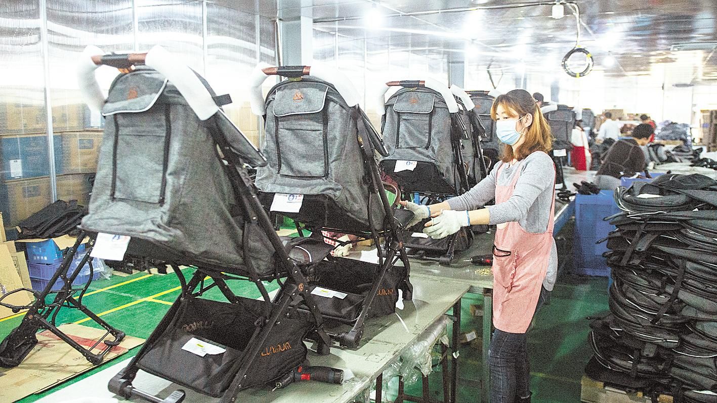 4月20日,汉川市洋田塑料制品有限公司内,工人正在生产婴儿手推车。据了解,汉川童车产业改变以往童车全部贴牌生产的模式,加大自主品牌创新力度。近3年,汉川市童车产业累计研发投入1.13亿元,7家企业通过境外商标注册。目前,全市现有童车生产企业36家,规模以上童车生产企业18家,销售收入过亿元的骨干企业5家。 (湖北日报全媒记者 何宇欣 摄)