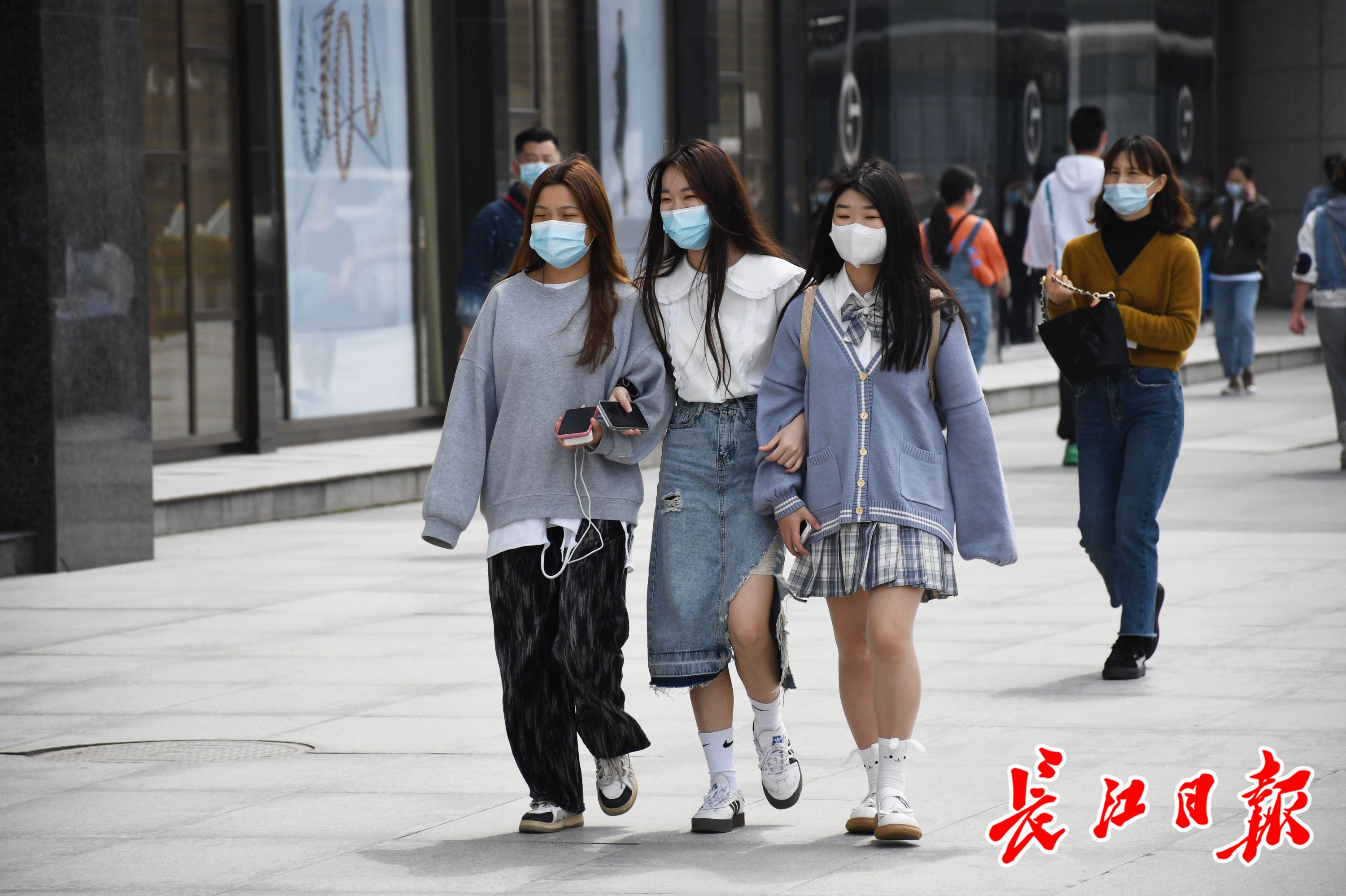 4月27日,在汉口航空路街头,人们换上了轻薄的春装。长江日报记者詹松 摄