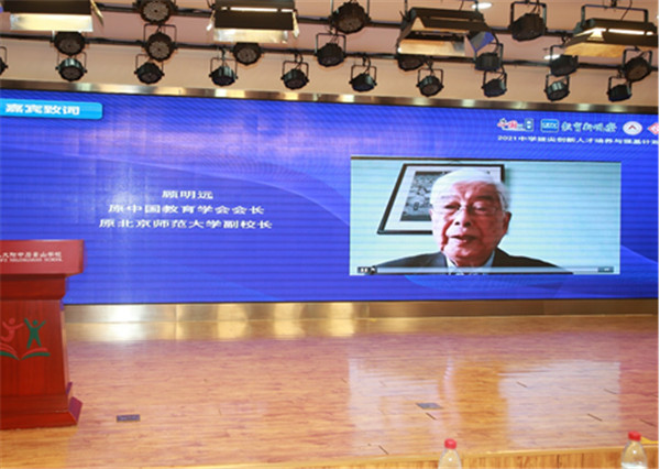 中国教育学会名誉会长、国家教育咨询委员会委员顾明远为本次研讨会录制了开幕致辞视频。顾明远在致辞中表示,我们要实现第二个百年奋斗目标,实现中华民族伟大复兴,要实现创新驱动来建设创新意识、创新思维、创新能力,这对新时代教育工作者提出新的重任。国际竞争归根到底是人才的竞争,这个竞争当中教育的基础性、战略性更加凸显。