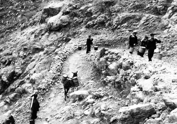 翻山越岭去挑水(来自红旗渠官方网站)
