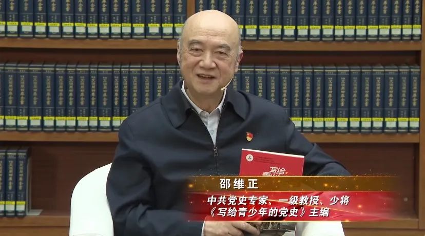 《写给青少年的党史》主编、中共党史专家、少将邵维正教授从事党史学习、研究已有五十余年。他谈到,读书对于青少年的成长和发展尤其重要,生活在如今的新时代,学习党史更是青少年的必修课。目前,市面上的党史读物种类繁多、各有千秋,但写给青少年的党史,应当要符合其感性认识,从讲故事开始,先是以情感人,然后以理服人。为青少年写一套书、给青少年讲党史,是邵维正教授一直以来的心愿。他告诉大家,无论处在人生的哪一个阶段,党史都能给予我们精神力量和人生启迪,指引我们走好人生道路。