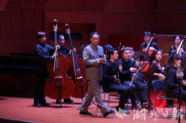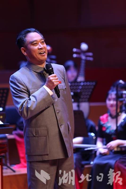 湖北日报讯(记者农新瑜)“同志们、贵宾们、各位代表:25年前,伟大领袖毛主席在天安门城楼庄严地宣布,中华人民共和国成立了,中国人民从此站立起来了……”4月28日晚,武汉音乐学院编钟音乐厅,一个熟悉的身影在舞台上出现,一个响亮的声音久久回响。原来,这是扮演周恩来总理的我国著名特型演员之一梁春书,应邀来到现场进行表演。