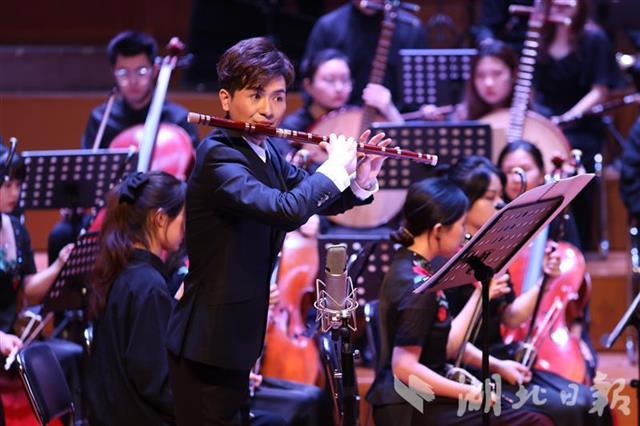 据了解,当晚梁春书的表演属于一次特别的“友情加演”。当晚,从山西考取武汉音乐学院攻读硕士学位的青年笛子演奏家王慧峰,在硕士毕业之际举办个人独奏音乐会,梁春书与山西省音乐家协会竹笛学会副会长蒋宁老师等一行,作为家乡代表专程来汉表示鼓励和祝贺。听说梁老师来汉,音乐会主办方特意邀请他登台表演,作为党史学习教育的一个特色环节穿插在音乐会中。