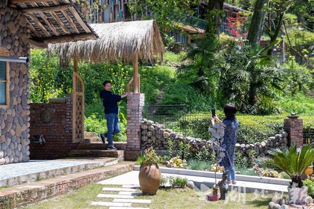 2021年4月29日,游客在利川市毛坝镇的一家民宿度假休闲。