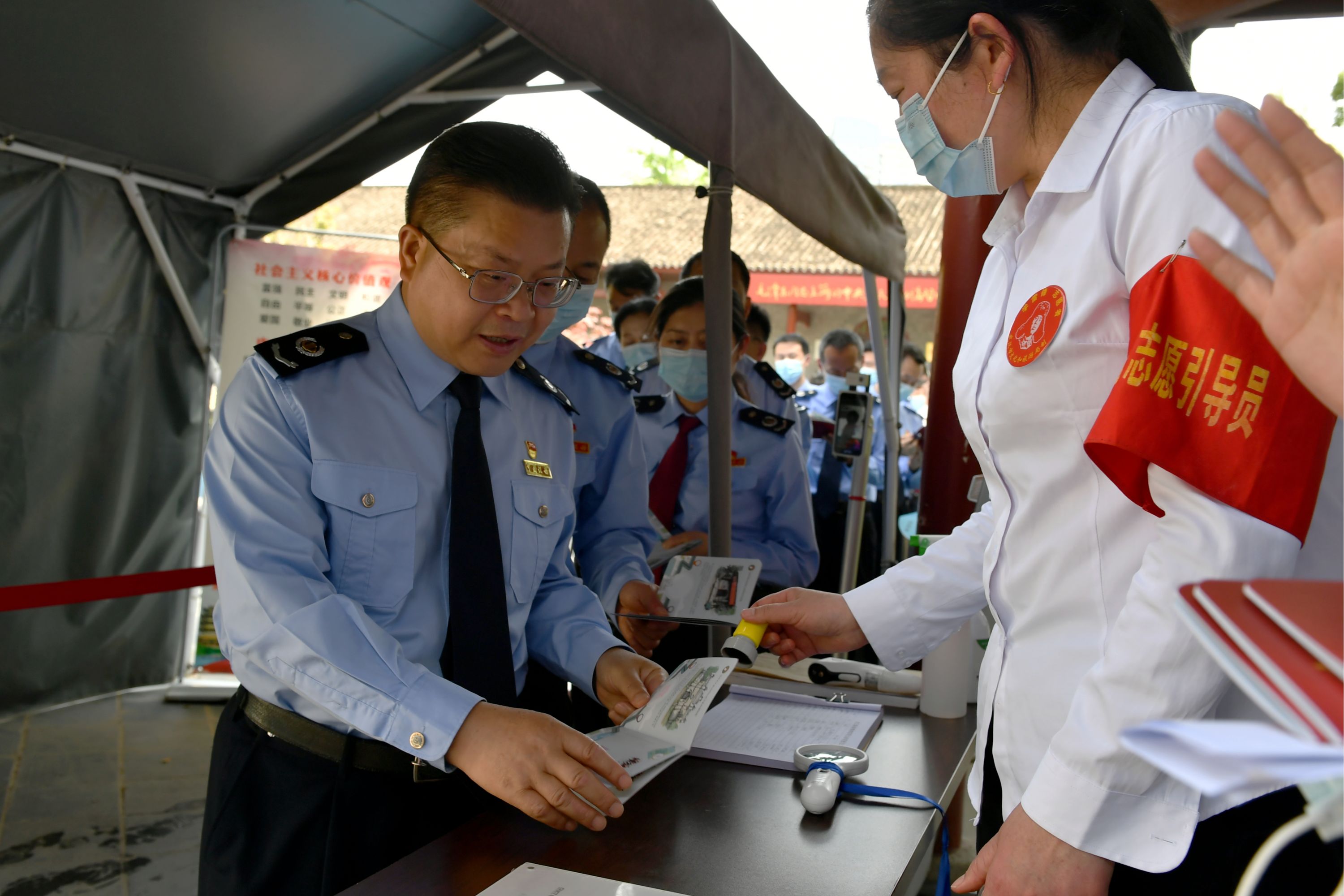 活动现场,记者看到,税务人员人手一本红色小册子,每参观完一个纪念馆,就在出口处交工作人员盖上纪念印戳。