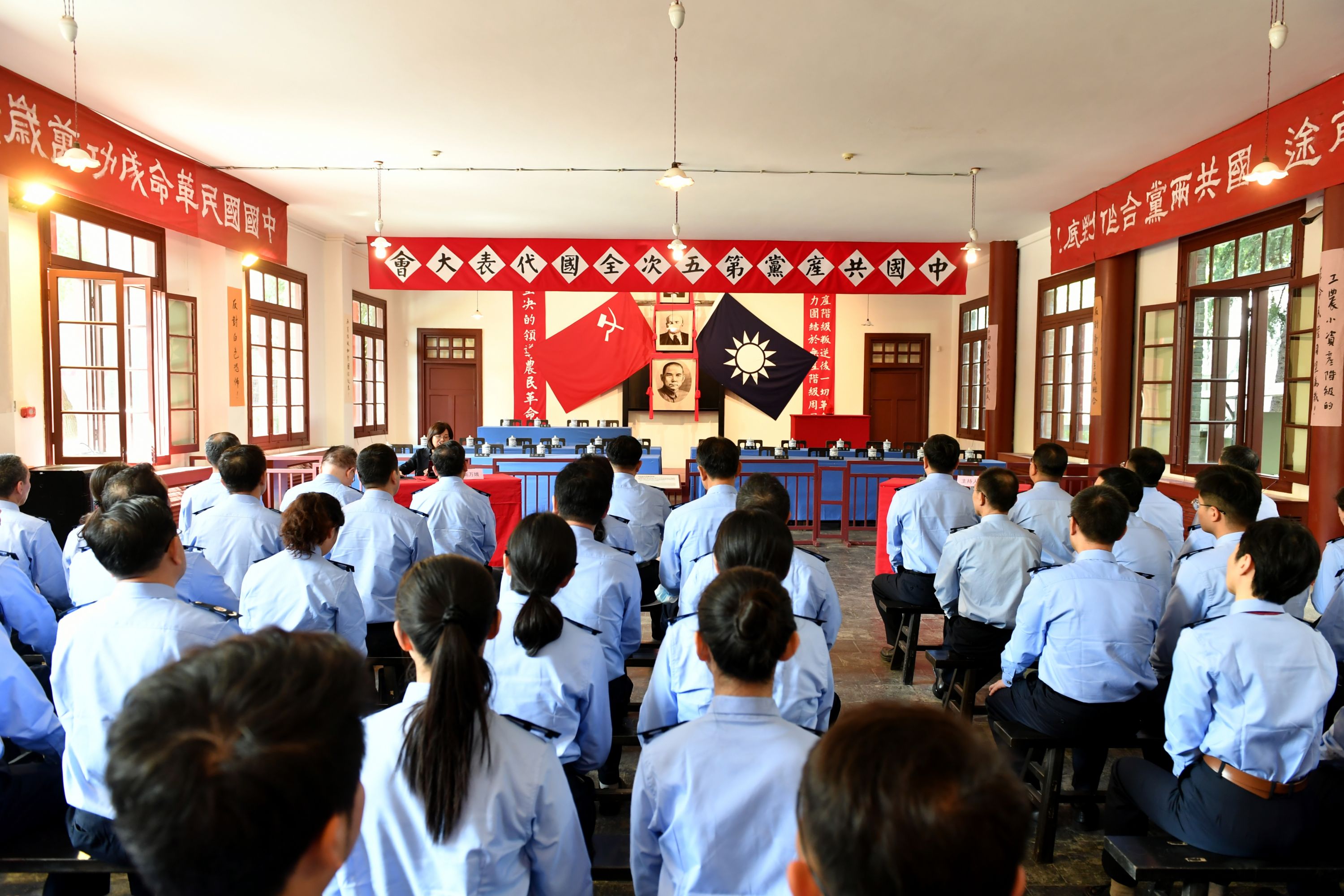 活动现场,记者看到,参加活动的税务人员多以青年为主。在这里,他们不时在革命老照片前驻足、讨论,特别是看到“四·一二”政变中牺牲的共产党员的惨烈场景,看到毛泽东旧居里艰苦的生活环境,讲习所里一排排长条凳,他们纷纷拿起手机拍照,并上网搜索相关内容。