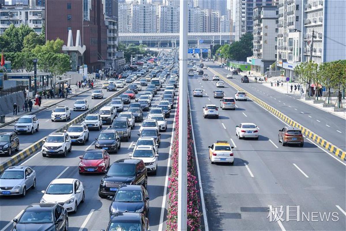 5月1日上午,武昌珞狮路,随着昨晚和今天清晨出城高峰过后,该路段进城和出城的车流泾渭分明。上午9时至10时30分许,极目记者在街道口和马房山路段看到,由南向北而来(即进城方向)的车流剧增,而由北向南(即出城方向)的车流已明显减少。