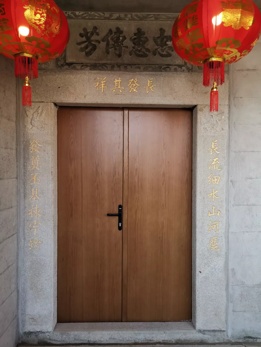 父亲把自己和母亲的名字,编成对联刻在了石门上,雕花刻鸟。