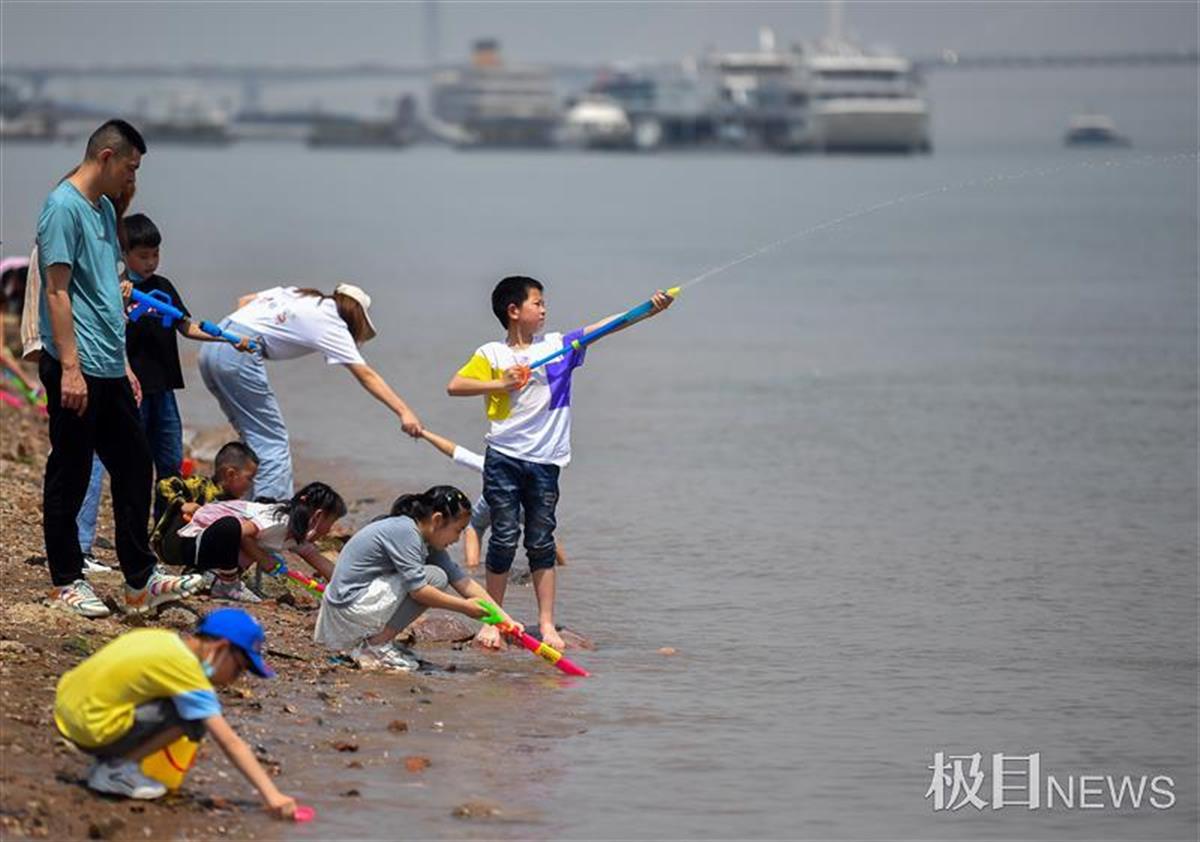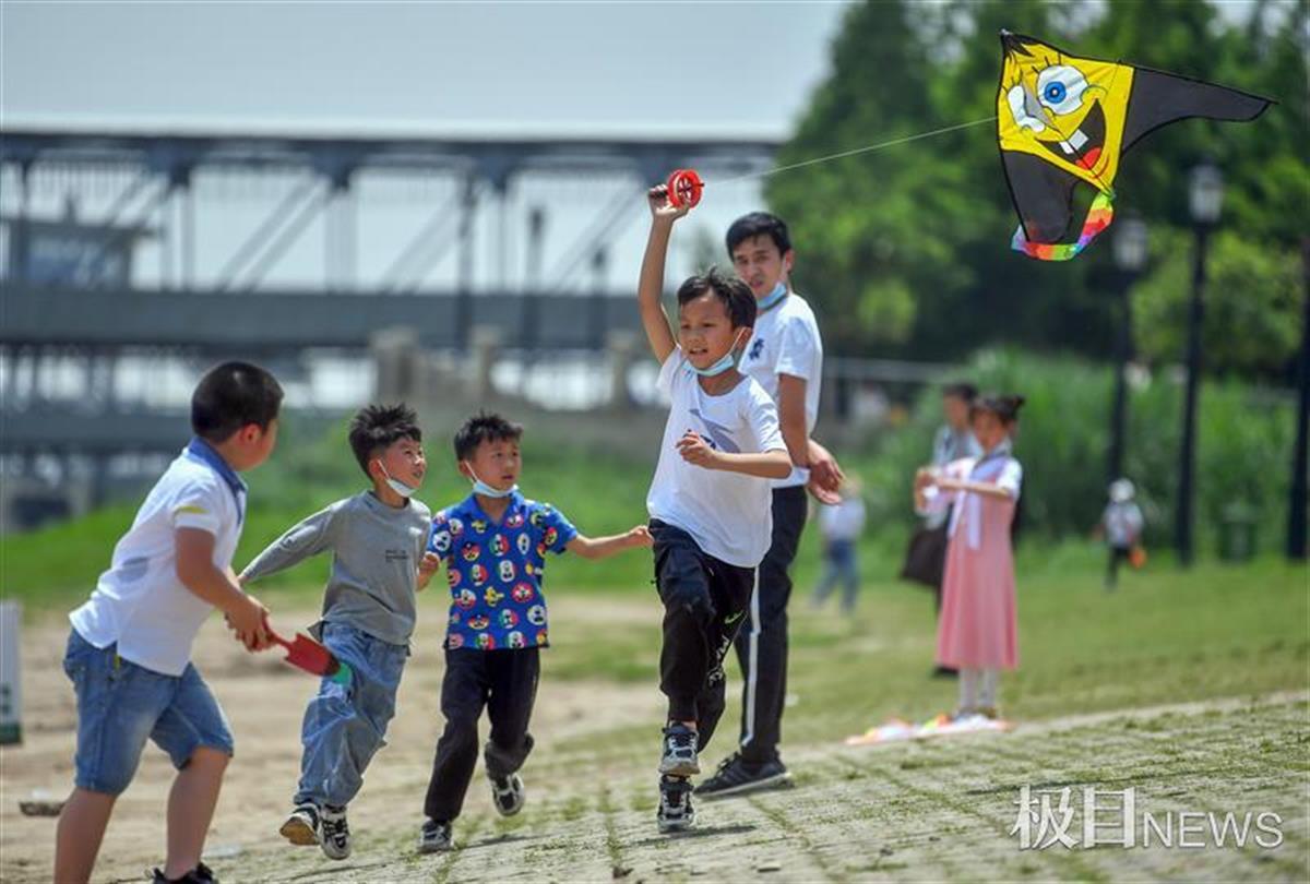 五一小长假首日,不少市民游客乘着晴好天气来到汉口江滩游玩。江边沙滩变成了孩子们的游乐天堂,有的跑跳嬉戏放起风筝,有的堆着江沙滋着水枪,热闹非凡。江风习习,艳阳高照,欢乐的笑声在长江边回荡。