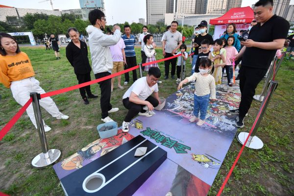 小朋友在玩扔沙包游戏。长江日报记者喻志勇 摄