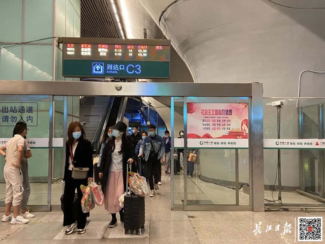 张女士夫妻带着两个孩子在武汉站下车,她说这次假期自己一家是回武汉探亲,1日下午3点多就到了北京西站,一直等到晚上8时40分才上车。“因为带着孩子,被安排优先进站到母婴室等候,但是孩子途中会有些哭闹,上了车后很顺利了,总算是到武汉了。”