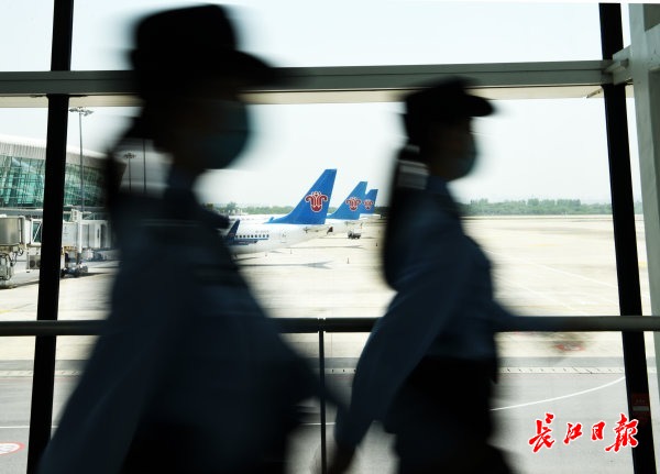 长江日报5月2日讯 5月1日,天河国际机场,民警张化雯、张紫薇身背5公斤单警装备,徒步巡逻,并不时向寻求帮助的旅客答疑解惑。遇到临时急需办理证件和物品遗失的旅客,她们及时出警化解。长江日报记者跟随“空港警花”其中一路执勤小组,用镜头记录下她们一天的真实工作状况。