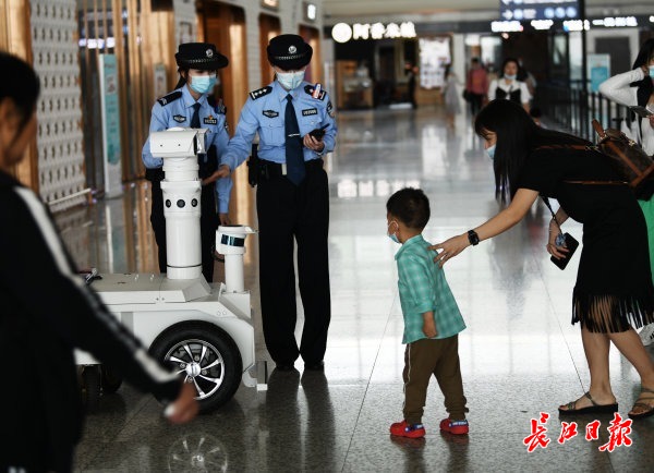 处置完警情,张化雯、张紫薇带着机器人再次开始巡逻。