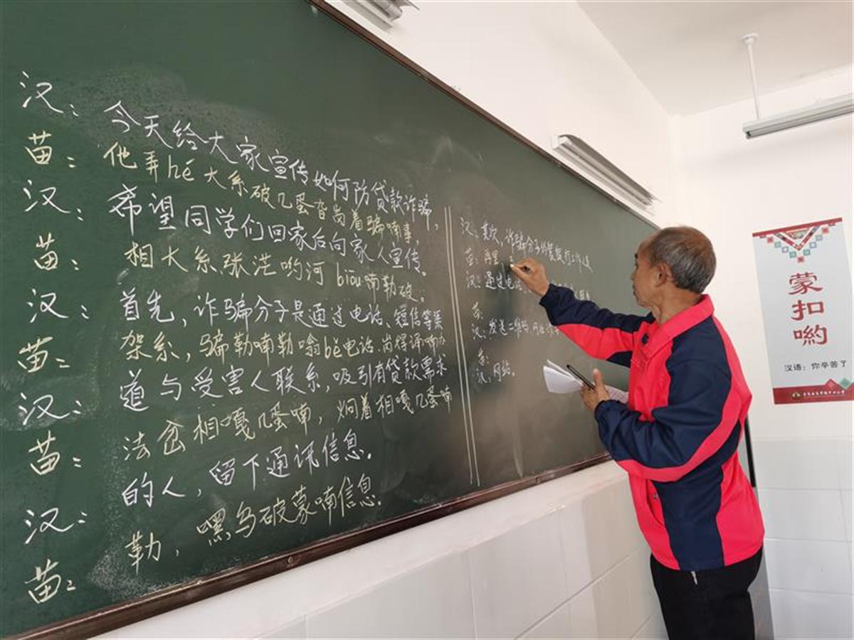 说干就干,民警和冯老师配合,改编了苗语版反诈山歌,近期将在课堂和村寨里唱响。