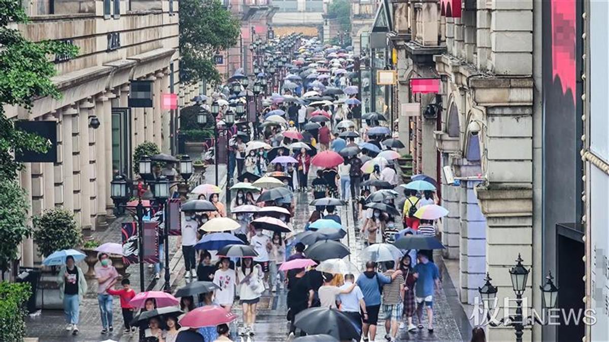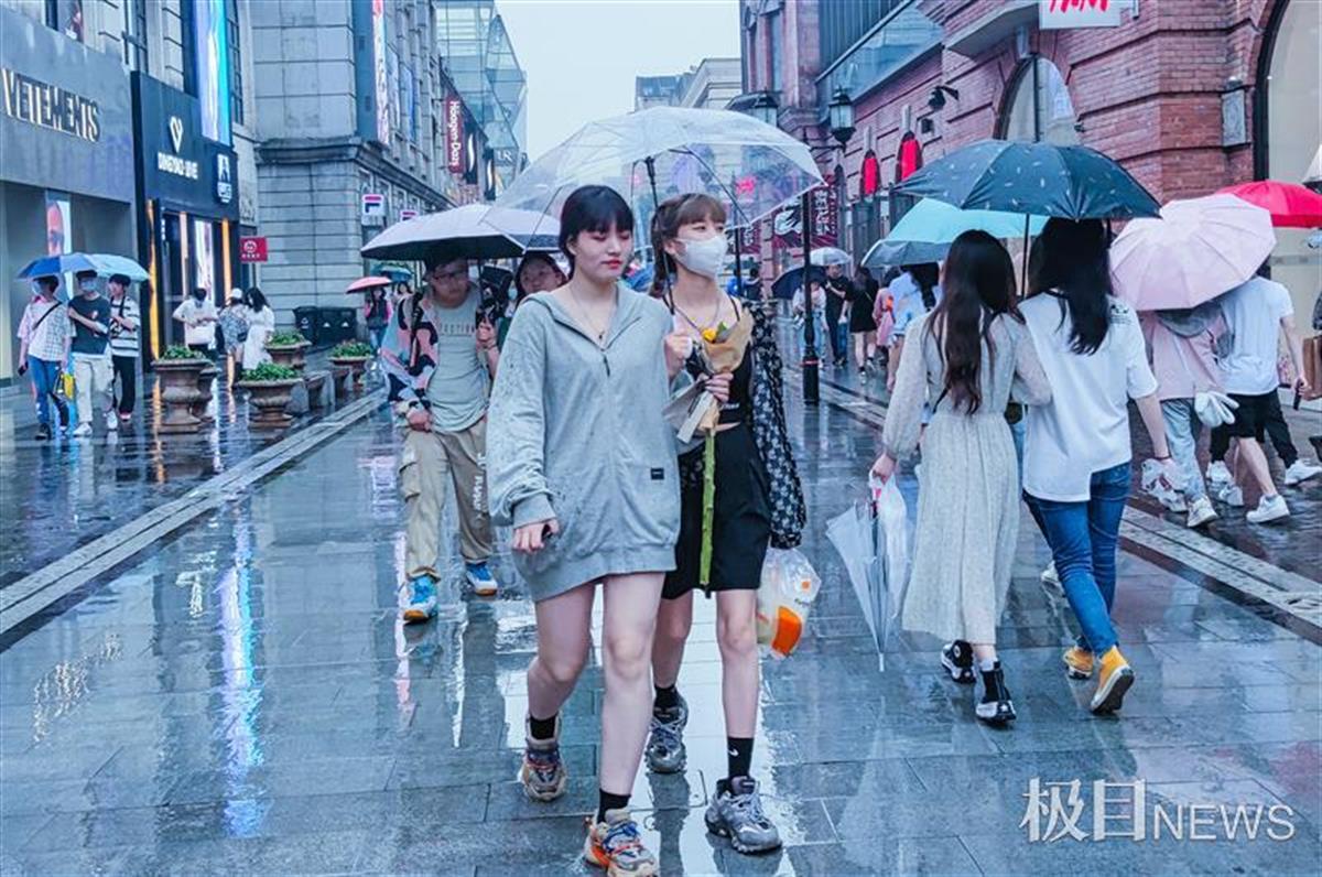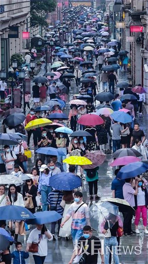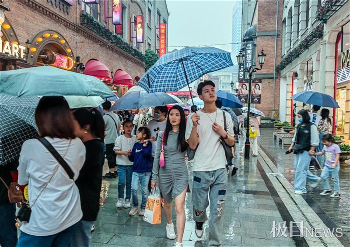 5月3日下午,武汉三镇春雨绵绵,沥沥淅淅下个不停。但降温降雨没能挡住人们出游的热情,雨中的武昌楚河汉街,依然是人流如织。