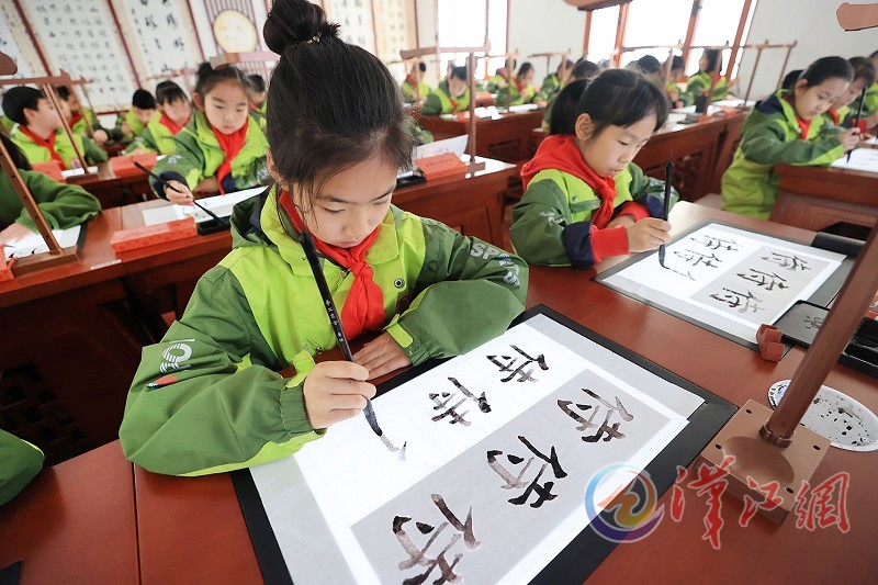 襄阳市米公小学今年投资70多万元,建设有交互式数字临摹系统的智慧书法教室和教师书法教室。智慧书法教室是在保留传统笔墨纸、传统书法临摹练习的前提下,结合多媒体、交互技术、智能硬件等数字化信息技术,提供丰富的课件、示范视频等教学资源,可实现字帖自由放大缩小,自由选择组合。 全媒体记者 王虎 李旭晖 摄