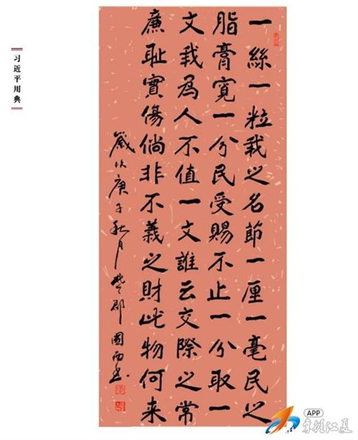 “每次读完《习近平用典》后,都能被古人的智慧、精神和其中所蕴含的哲理折服,习总书记恰如其分地引经据典,总给人以思想启迪、精神激荡,我喜欢书法,所以我就想写出来整合了这本集子。”刘国西说,这是他出书的初衷。