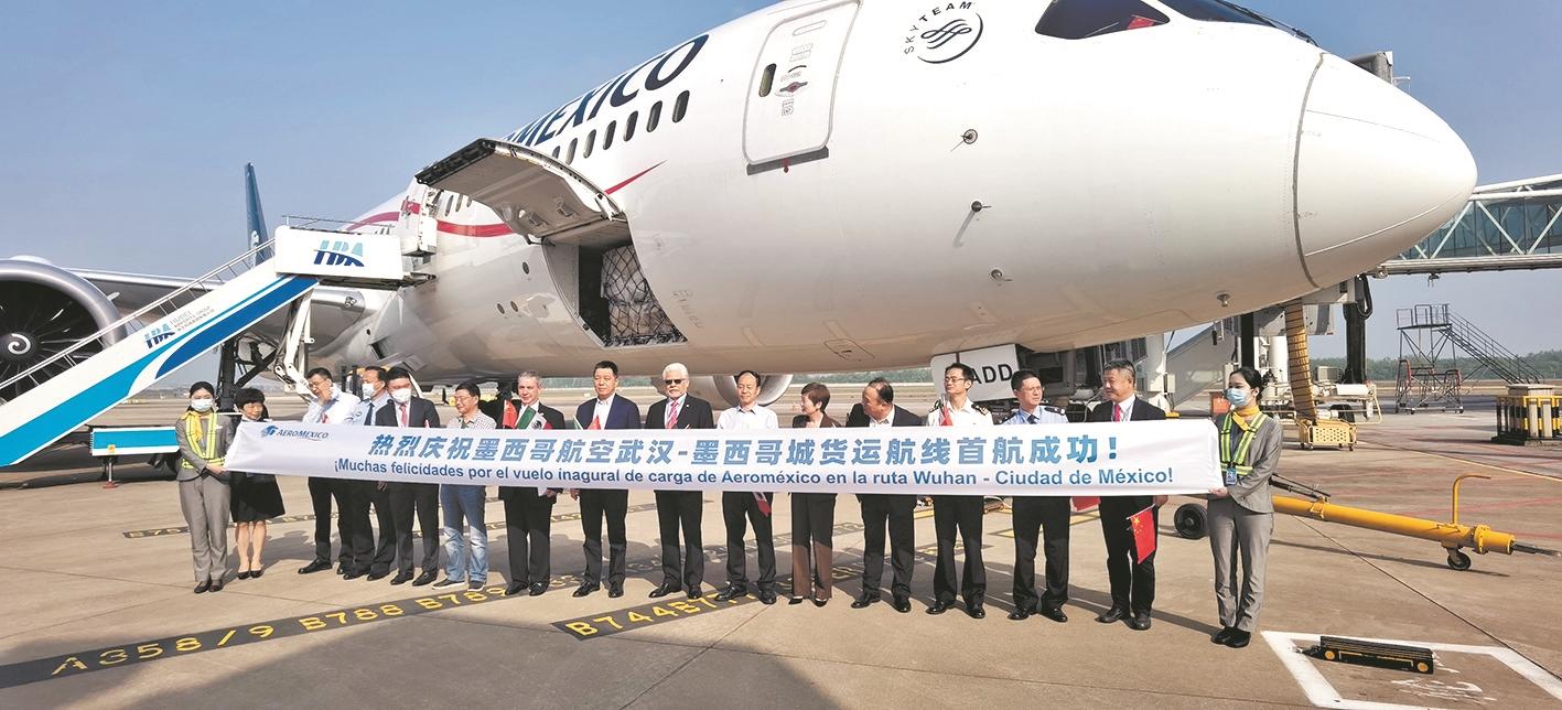 极目新闻记者了解到,武汉—墨西哥城货运航线由墨西哥航空公司承运,每周两班,每年预计可实现3500吨的货物吞吐量。该航线的开通标志着中国长江经济带与拉美地区的互联互通,极大提高了省内外货物通往中美洲及拉丁美洲地区的航空物流时效,有效满足了本地高科技企业货物出口拉美的运输需求。