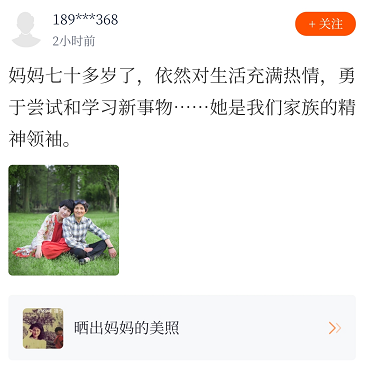 点击#晒出妈妈的美照#话题>>>