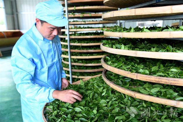 5月7日,采摘的乌龙茶鲜叶直接进入加工生产线。