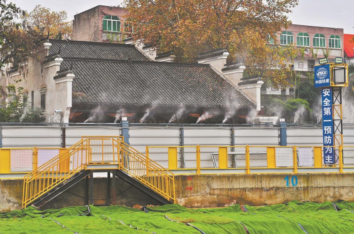 该区间的隧道顶,距离武汉市标志性建筑黄鹤楼约37米,平面距离70米,隧道还要侧穿景区内名胜古迹——胜像宝塔。宝塔为元代建筑,距今已有677年历史,这些历史建筑对施工提出更高要求。