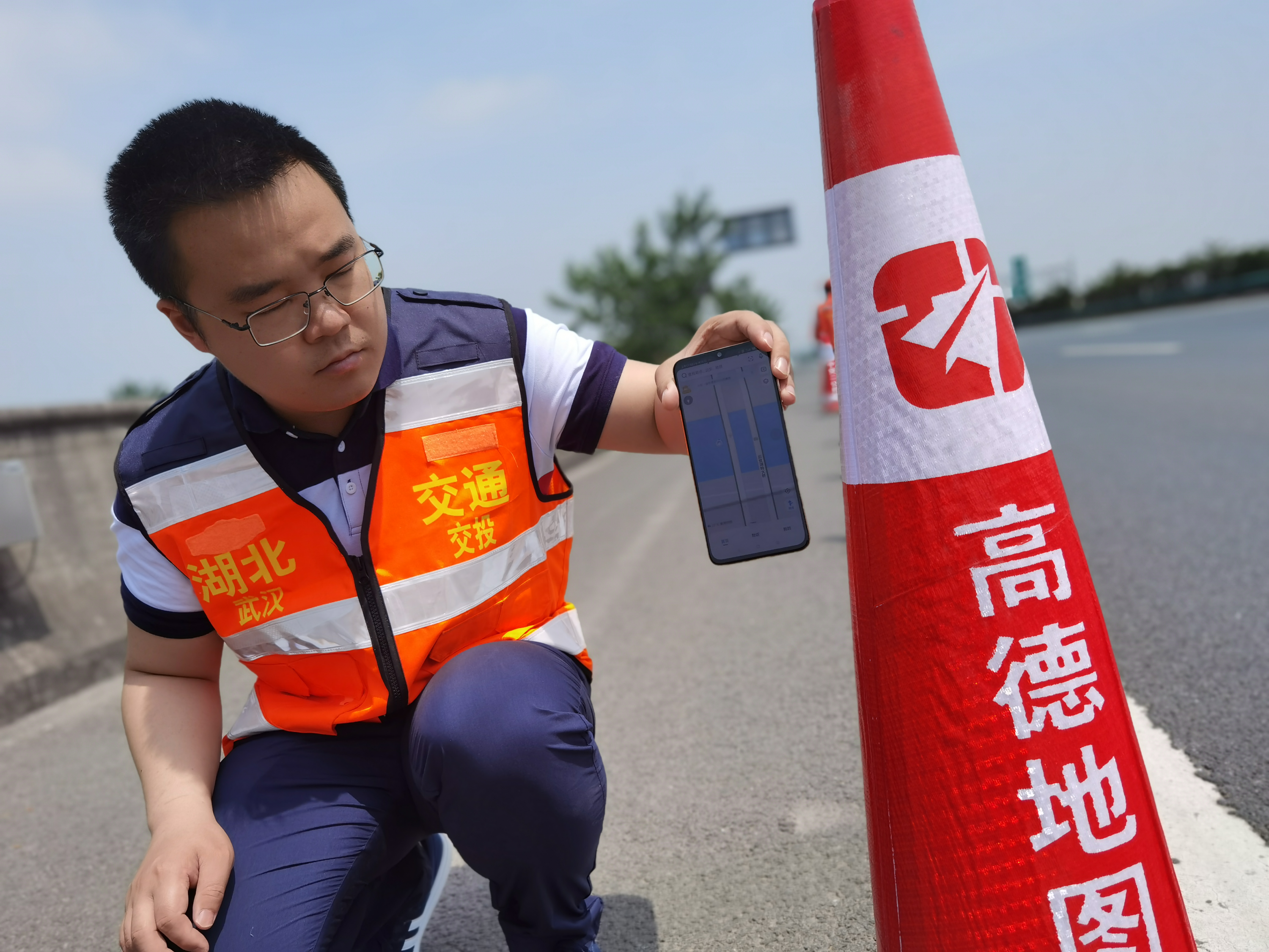 长江日报记者在四环线高速公路上看到,施工人员在施工区域摆放“智慧锥桶”后,设备自动定位,自动上传位置,实时通过高德导航等移动终端发布,并在距离施工现场5公里、2公里的位置精准推送施工预警信息,提示通行车辆主动降速,安全通过施工路段。