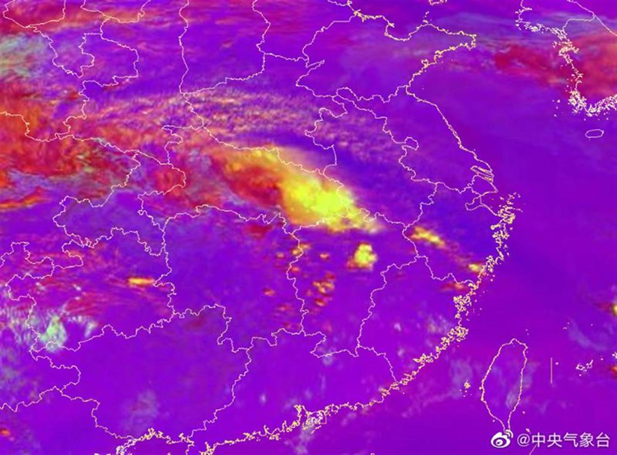 为何武汉午后秒变黑夜?来自中央气象台的解释:根据风云四号卫星观测的湖北境内对流情况,图片中的黄色代表着强烈上升的积雨云,对流激烈,云顶就高,从而云层变厚,天就黑了。