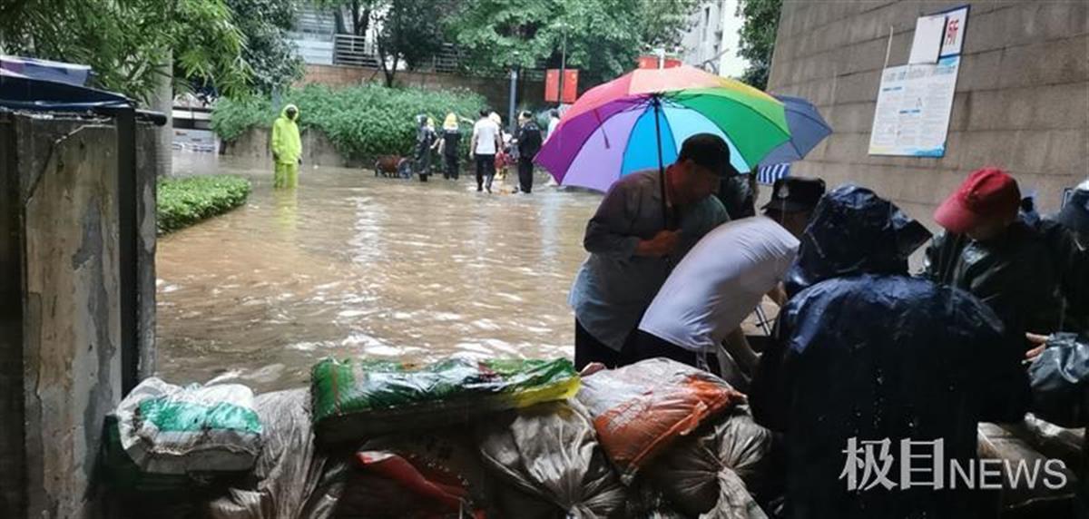 趁着雨势减弱,洪山区枫林上城小区赶紧给地下车库筑起一道防水坝,“民光路淹水,齐腰深,又倒灌小区了,幸好迅速采取了措施。”居民刘爹爹说。