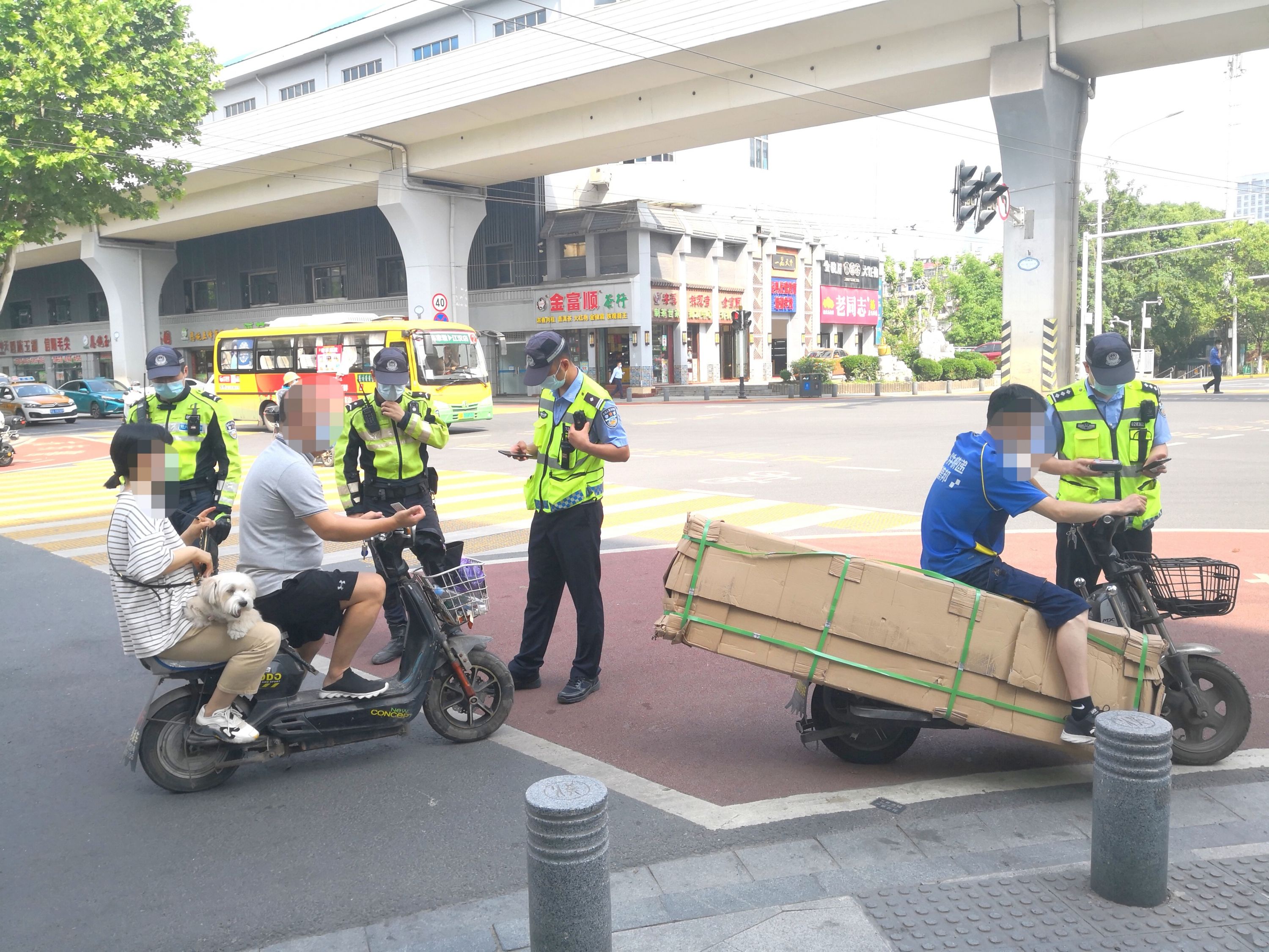 5月10日,武汉交警在全市重点路口及桥隧等重点区域设置86个执勤执法点,针对电动自行车逆行、闯红灯、走机动车道、不戴头盔等突出违法行为展开电动自行车整治,并对电动车销售市场进行源头管理。