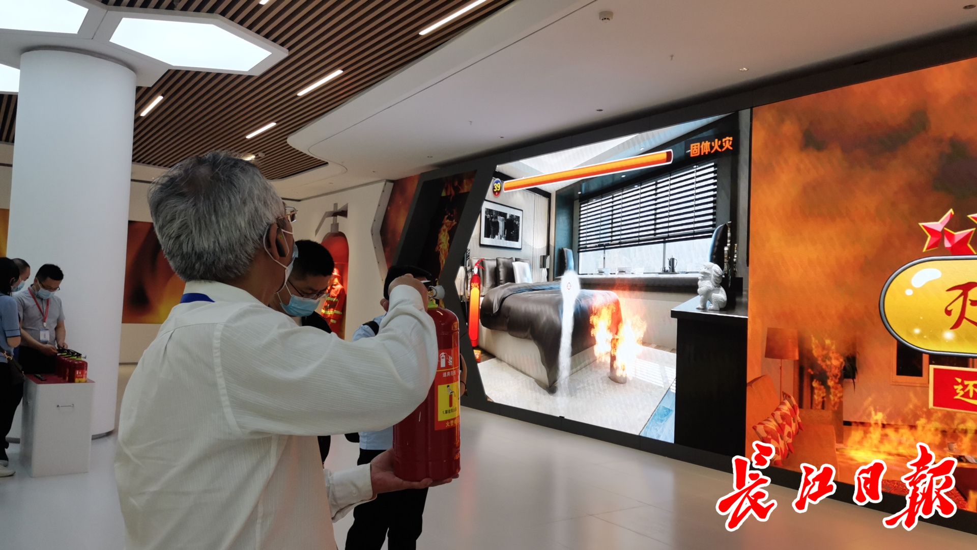 参观者体验消防灭火。长江日报记者李慧紫 摄